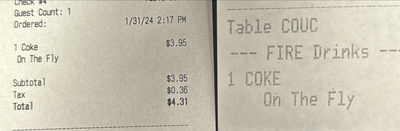 And it shows on guest receipts? Or is it a kitchen ticket?
