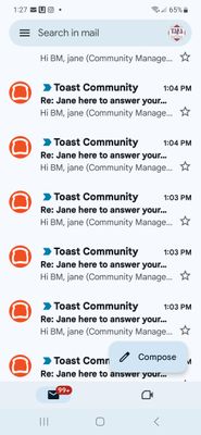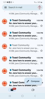 We came to this forum to ask questions, GET ANSWERS, not get our email blown up with useless comments by Toast. 38 emails in 30min. I run a business, I don't have time to sort thru 38 emails to find which one actually is answering my issues.