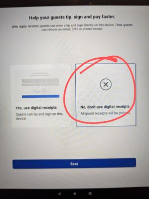 You need to shut off digital receipts if you don't want to use them, under device setup on the individual devices, turn digital receipts off. https://central.toasttab.com/s/article/Basic-Digital-Receipt-Configuration#enabling_digital_receipts...